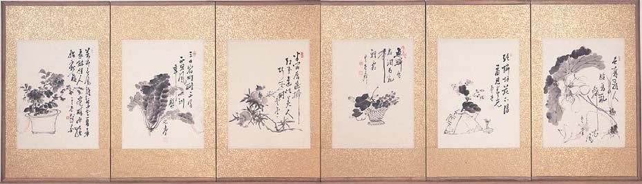 CN-148 唐美人民画貼交屏風 中形 六曲 一隻 ¥150000~ 紙本 46×62 屏風340×157 スレ シミ