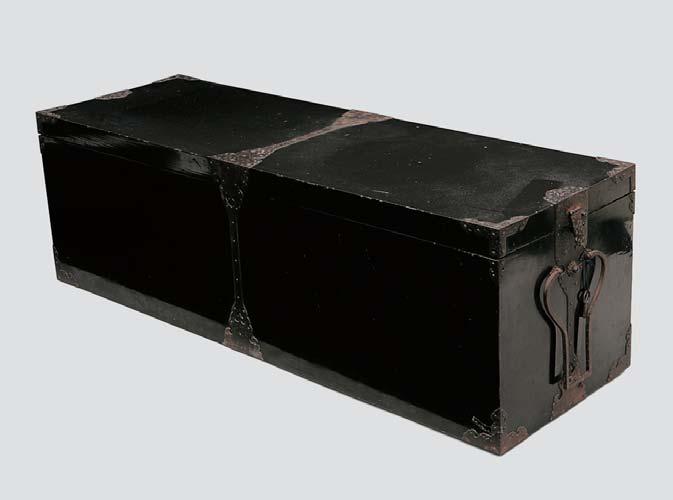 C-021 鉄錆地六十二間筋兜付二枚胴具足 ¥400,000~ 付溜塗具足櫃 威絲、家地ほか大破 「藤原家久」鉢裏銘
