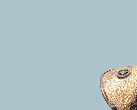 C-014 二方白星兜付金札紅絲威具足 ¥1,500,000~ 付黒塗唐櫃 大鎧を志向しているように見受けるが、胴は当 世形であるため表題は具足とした。胴は前立挙三 段、後四段、長側五段の二枚胴で、両乳鐶を打ち、 合当理を取り払って総角付鐶を具えている。栴檀 鳩尾板や各所の風留金物として五三桐紋を据え 打つ。