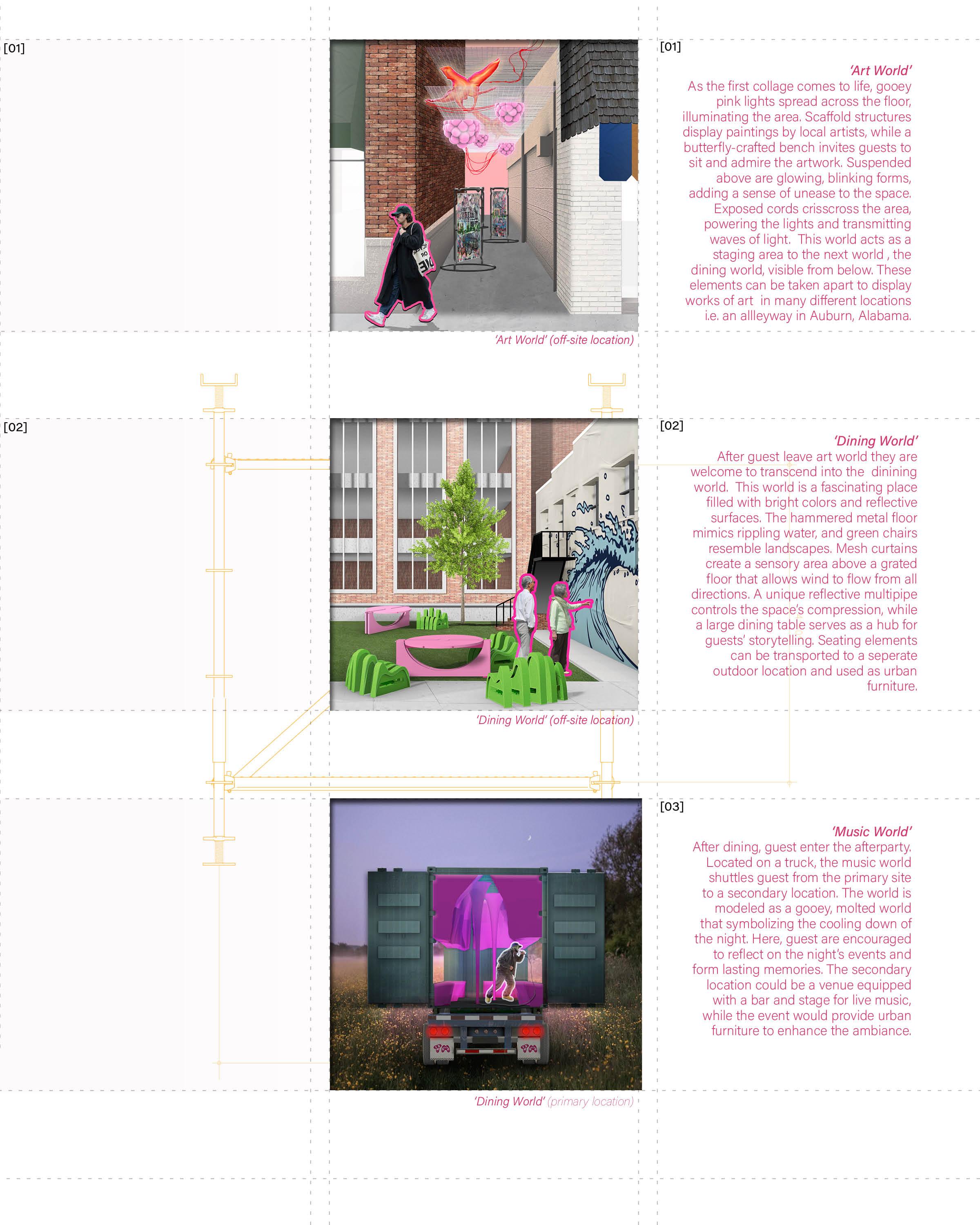 Explore various visionary design projects completed during time at the College of Architecture, Design, and Construction at Auburn University, along with exploratory artworks conducted outside of school. 2021-2024. Awarded Second Place for the Meyer Davis Portfolio Prize 2024.