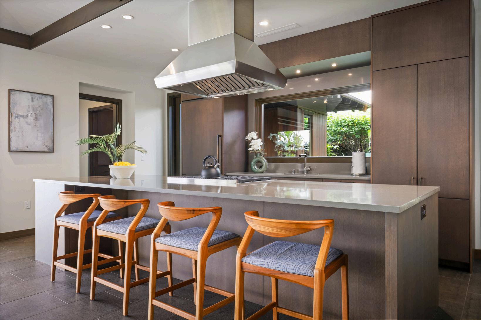 A detached one-bedroom guest hale, located just inside the entry courtyard, provides the perfect space for visiting friends and family.