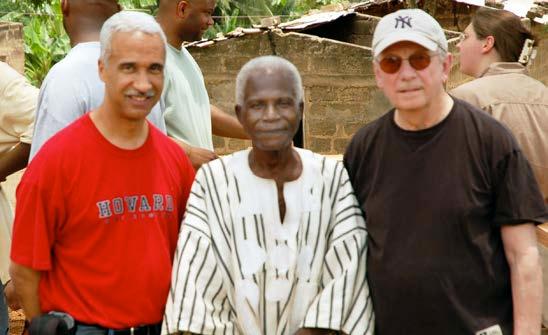 Brumsic (far left) and Bob flank a Chief of the village of Obodan in Ghana