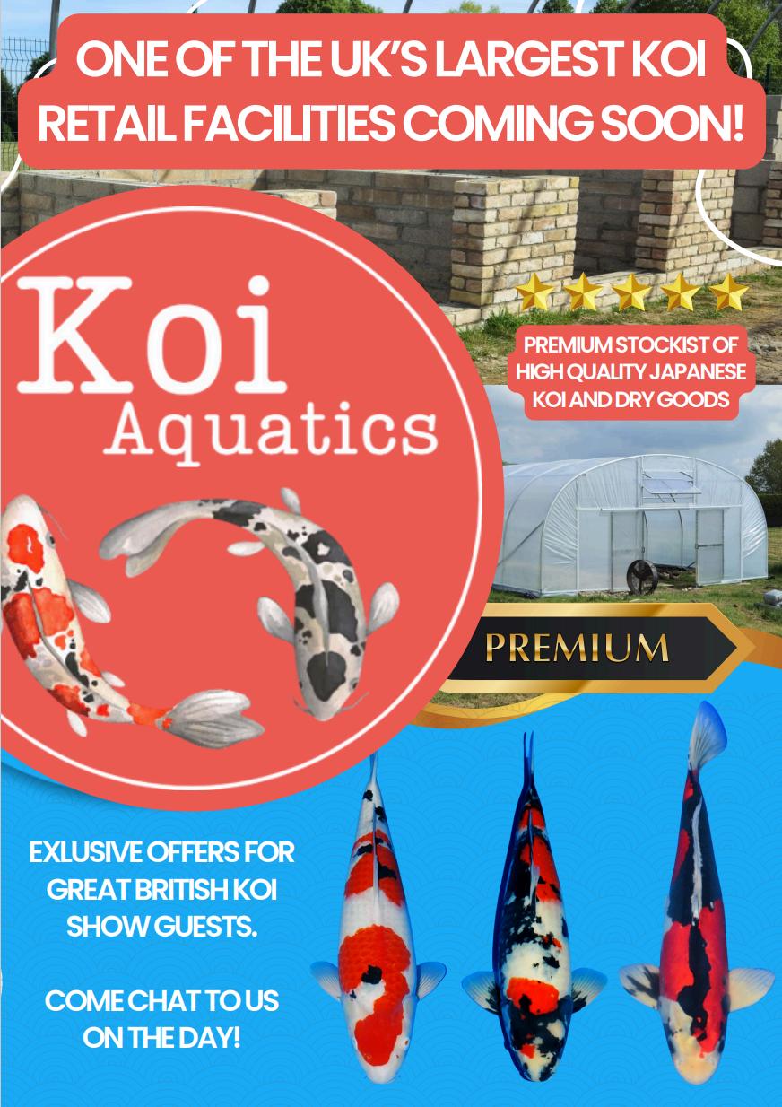 A huge thank you goes to our sponsors, Absolute koi, Evolution Aqua, FD foods, Kitsu Koi, Ogata Koi farm, ProfiDrum, Quality Nishikigoi and Shosha Koi and all the trade stands as without their support we could not bring you the Great British Koi Show