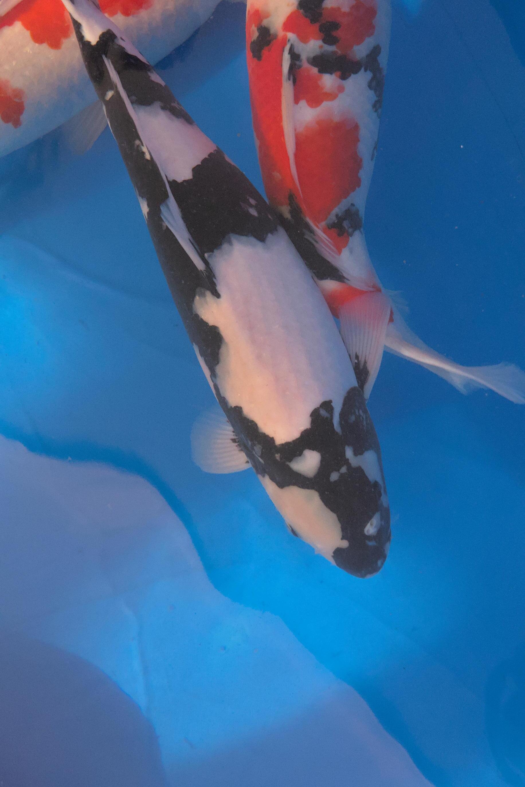 This Shiro Utsuri was a perfect example, fantastic pattern, one I was keen to bid on, however when I looked closer you could see a significant tightening into the tail from the body, which wasnt visable on the photograph, but thats why there is no reserve!