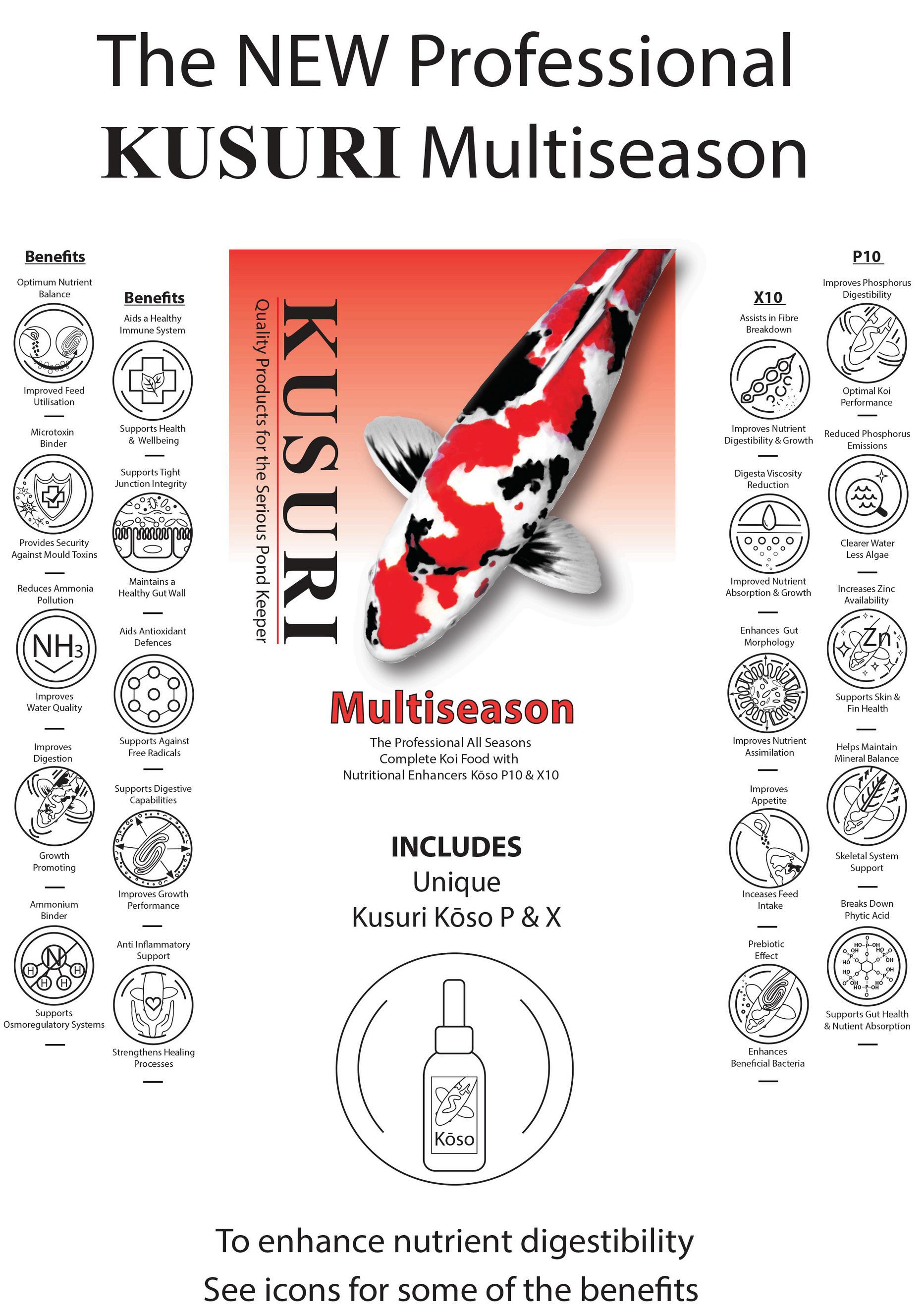 Everyday premium diet, for enhancing growth, improving immune systems and reduced waste. Available from 500g to 10kg in various pellet sizes.