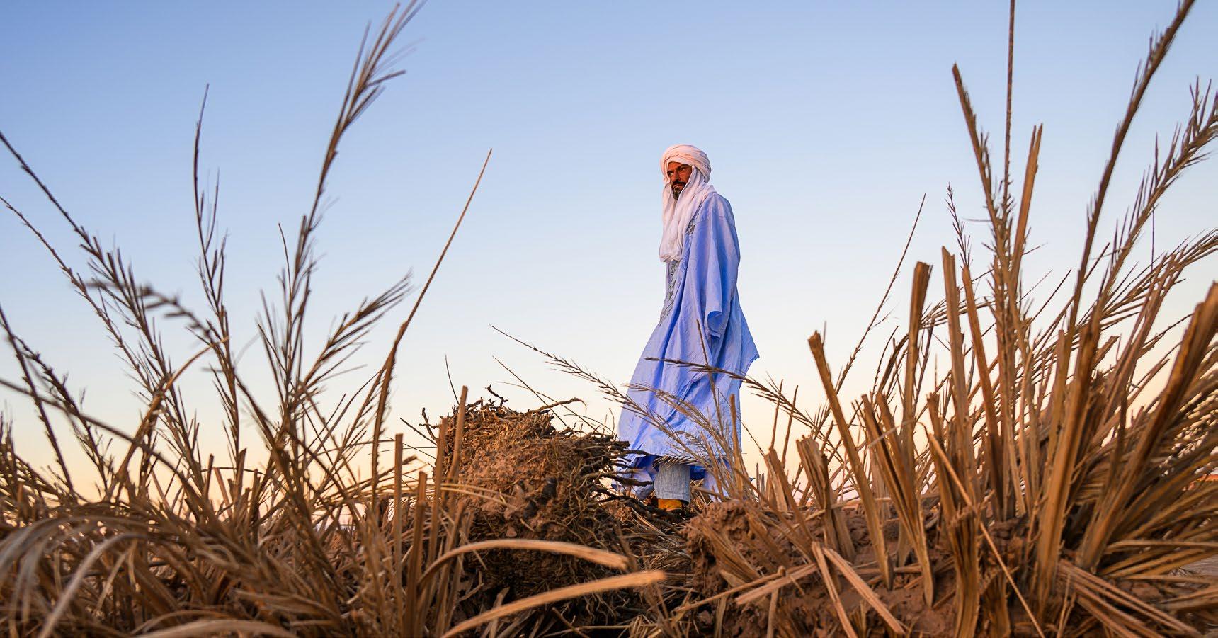Au pas de la porte de son oasis, Madani observe cette immensité désertique