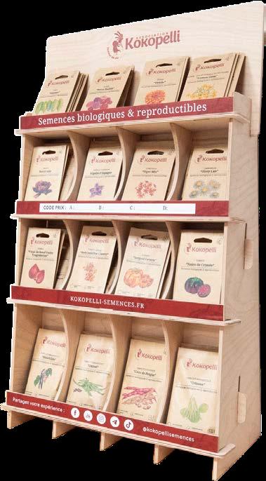 Pensés pour allier visibilité, impact et éthique, nos présentoirs en bois ou en carton sont conçus pour me re en valeur les semences de Kokopelli dans votre point de vente. Esthétiques et faciles à installer, ils a irent l’œil tout en a%rmant votre engagement en faveur d’une distribution responsable.