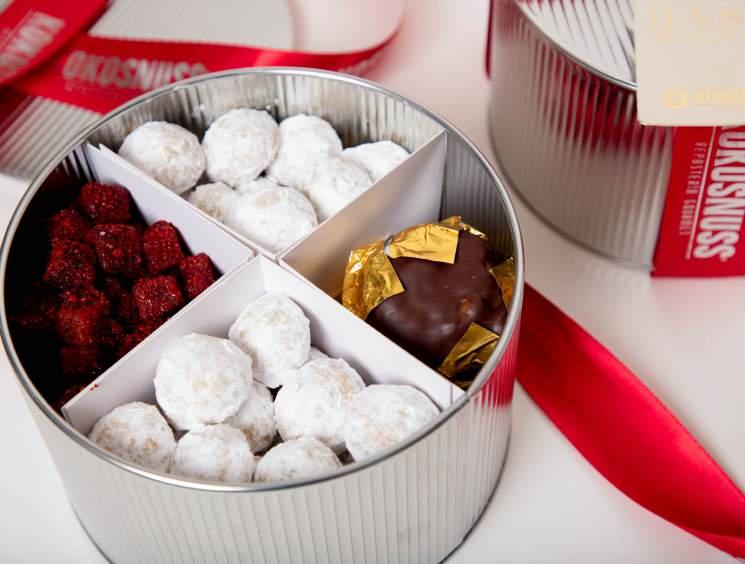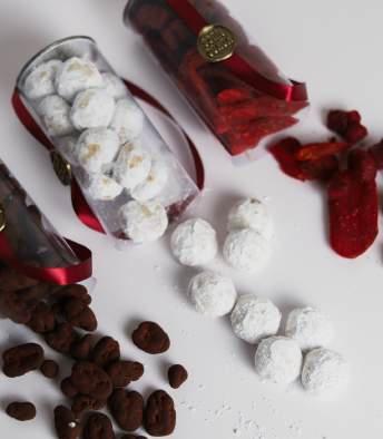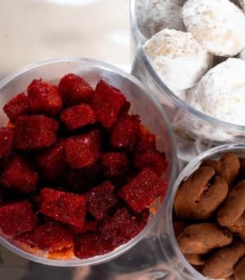 3 CILINDROS A ELEGIR: galletas de nuez / ate de guayaba enchilado / nueces confitadas con chocolate acaramelado y cocoa (sugerencia)
