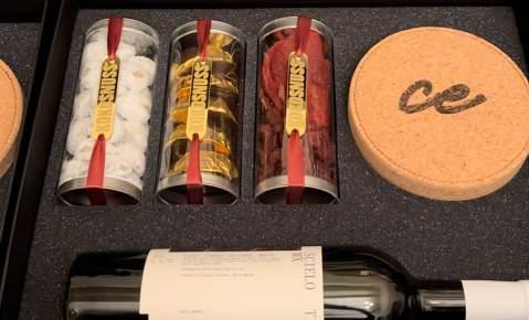 BOTELLADEVINOTINTOSCIELO-RIVEROGONZALEZ750ML CAJADECORCHOREDONDAPERSONALIZADACONLASERCON ACCESORIOSPARAVINO