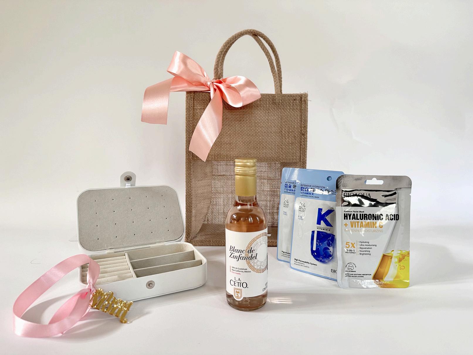 JOYERO DE VIAJE CON TAG DE ACRÍLICO “THE BEST MOM” 3 MASCARILLAS RELAJANTES PARA ROSTRO MOÑO