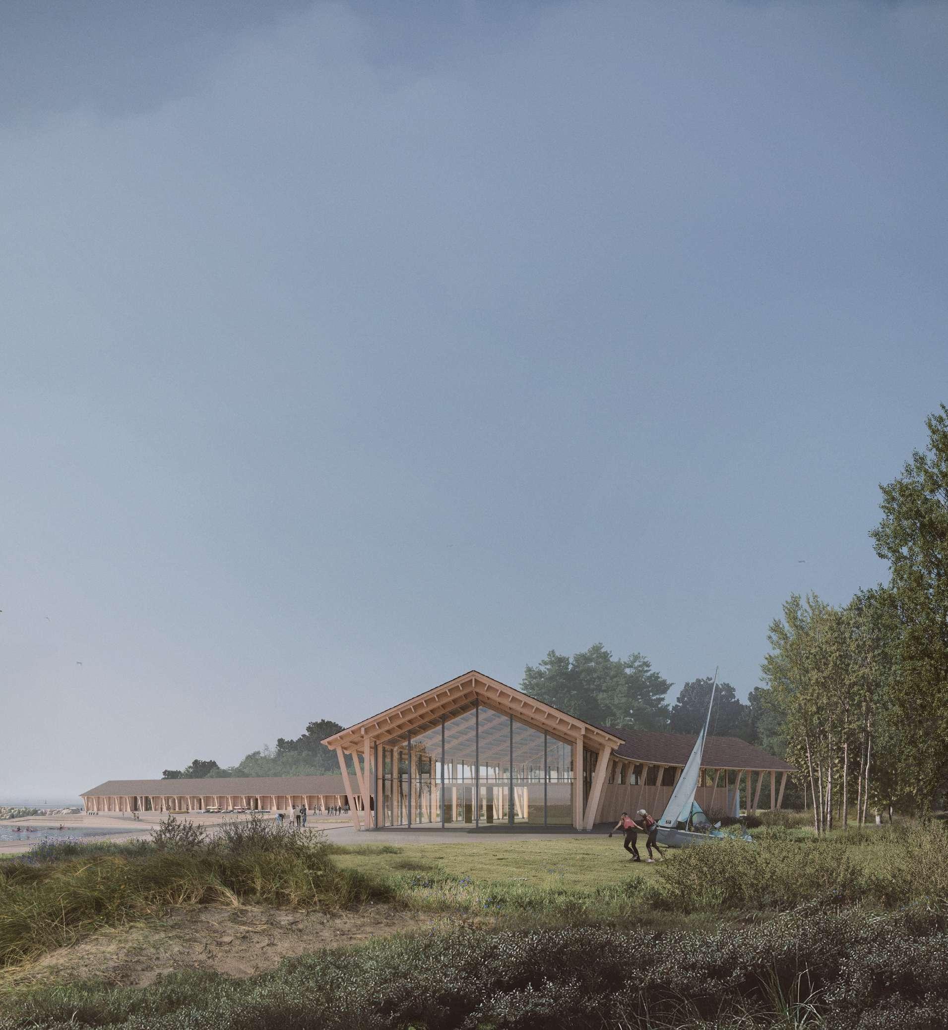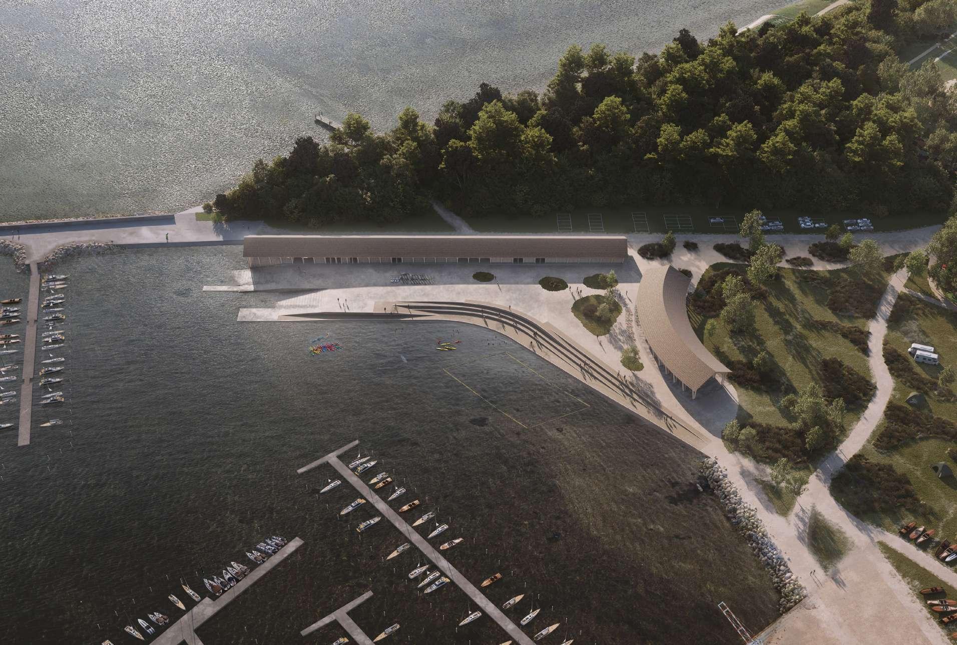 The competiton brief for the Maritime Centre in Frederikssund, a town on Zealand in Denmark, asked for a comprehensive design that would not only meet the needs of the local water sports enthusiasts but also act as a social hub for the resident community. Moreover, the detailed competition brief required two versions, more complex vision project and basic project, either of which would be realised according to the amount of funds collected.