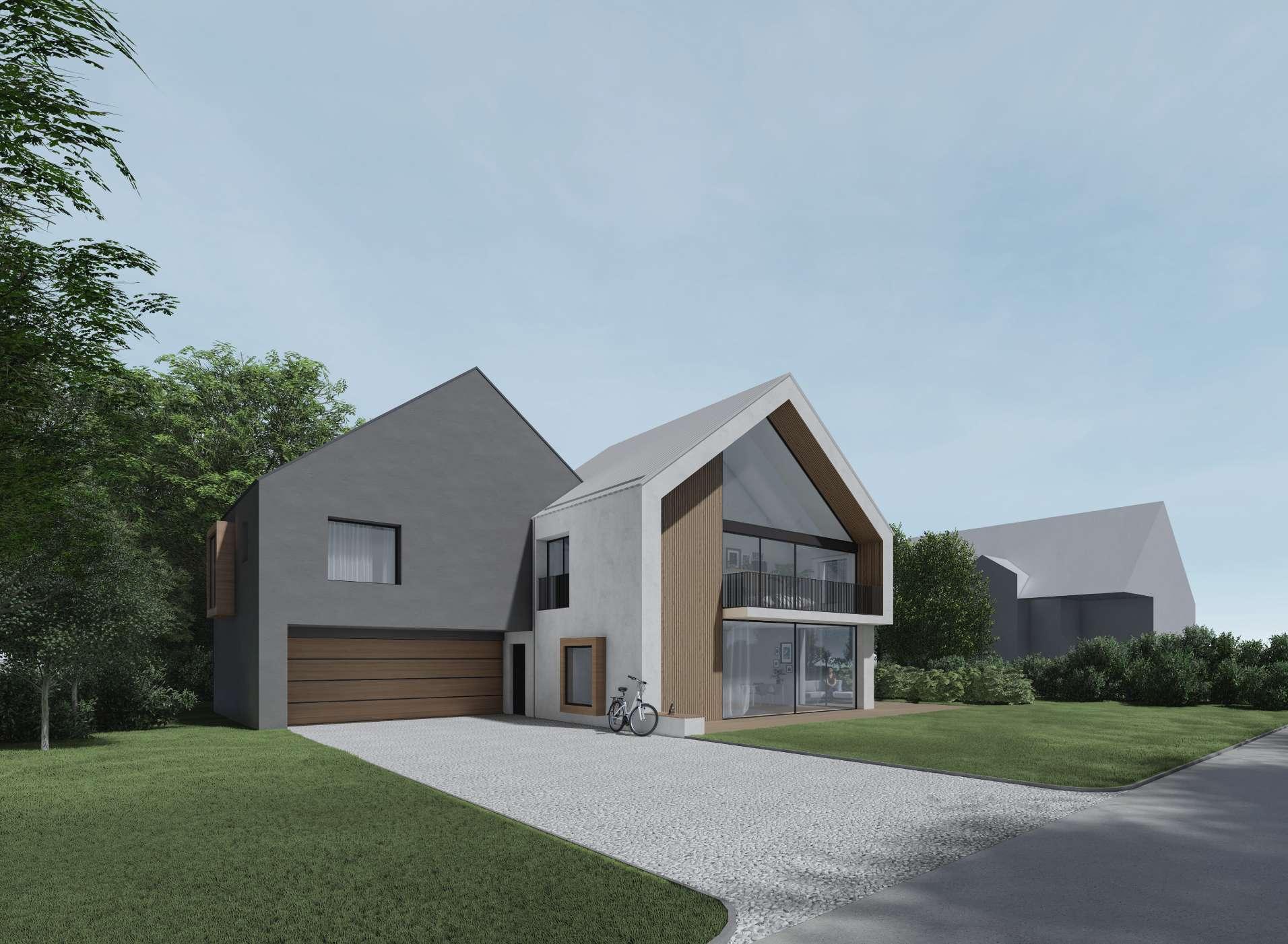 This house design faced a few challenges as the plot had the main access from the south. Therefore, there was a risk of compromising privacy with the idea of a living room with big windows facing the south that appealed to the investors. On top of that, the owners wanted to keep their distance from the neighbours on the west side. My solution was the house split into two parts, so the living and access areas were noticeably divided and not interfering with each other The main living area was located on the east as well as the master bedroom according to the request of the investors.