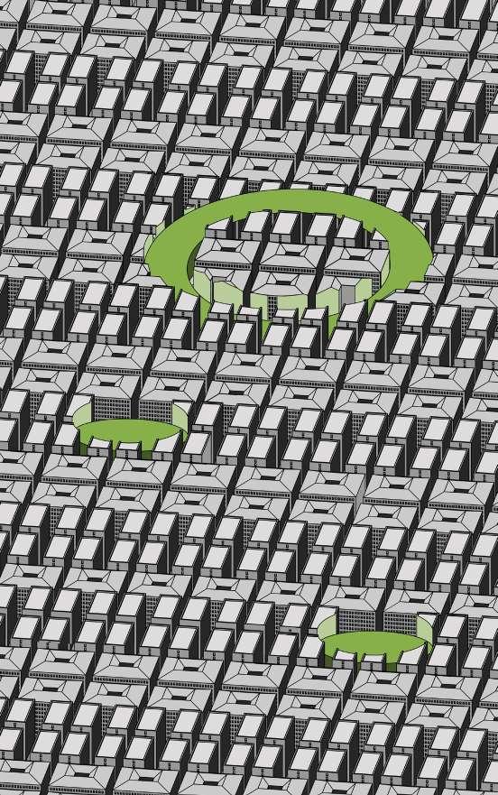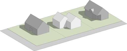 splitting in two the average house with pitched roof and ridgepole perpendicular to the street
