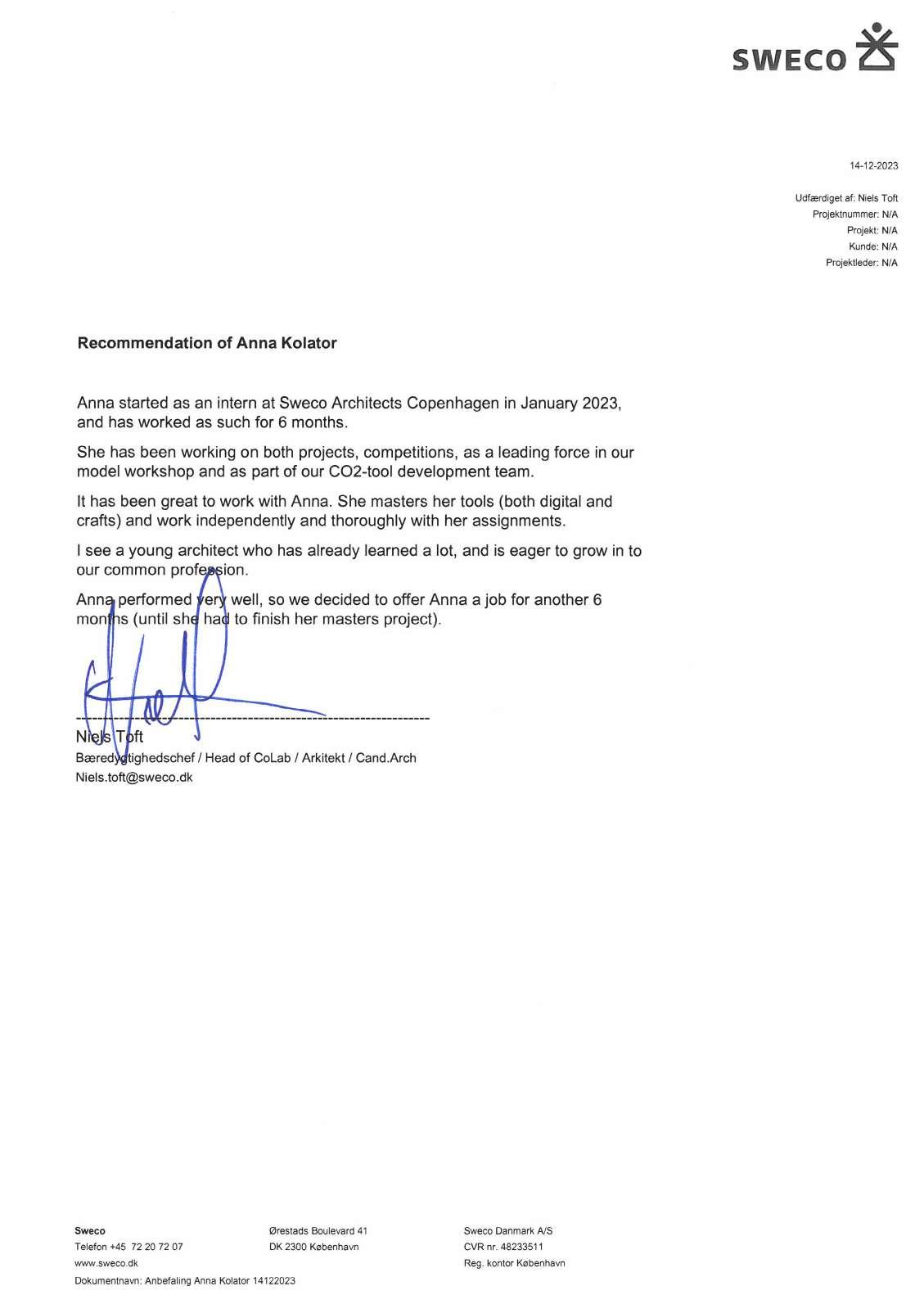 Anna Kolator worked in our architectural firm as a project assistant intern for a period from April 19 to July 30, 2021.