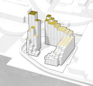 I was engaged in development of this competition design from the initial discussions to the delivery deadline. I was working on conceptual sketches and layout planning and then mainly on the Revit model and diagrams such as the one on the next page. I prepared final versions of the floorplans visible on the following page. Moreover, I participated in preparation of the physical model.