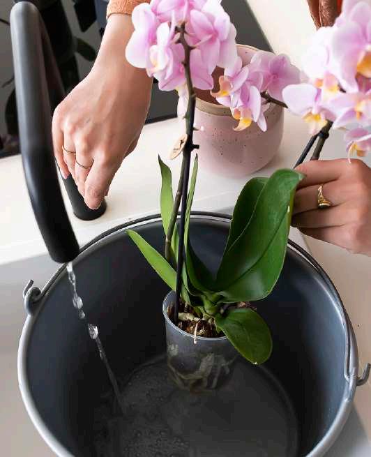 Watering. “A weekly soak is usually enough. Make sure the roots can drink well, but don’t let water stand in the pot. Are the roots grey? Then it’s time to water, as they are dry.”