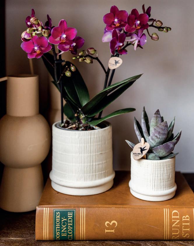 Het verhaal van Kolibri gaat verder dan alleen de prachtige orchideeën uit de Kolibri Orchidscollectie. Het draait om een totaalbeleving waarin trendy planten van Kolibri Greens, perfect bijpassende potten en stijlvolle woonaccessoires van Kolibri Home samenkomen. Alles is zorgvuldig gecombineerd in inspirerende collecties, gebaseerd op de laatste trends. Zo creëert Kolibri een harmonieus geheel waarmee je het interieur compleet maakt.