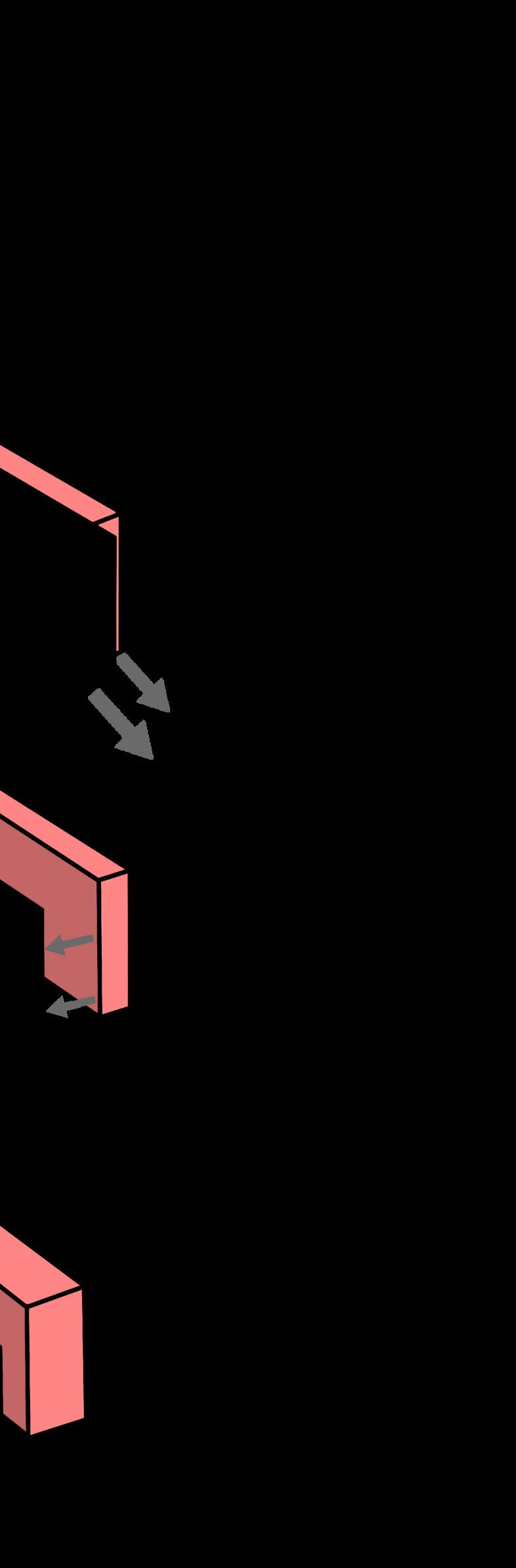 The circulation pattern goes through and fro between the blocks via the bridges between the blocks which creates poss points
