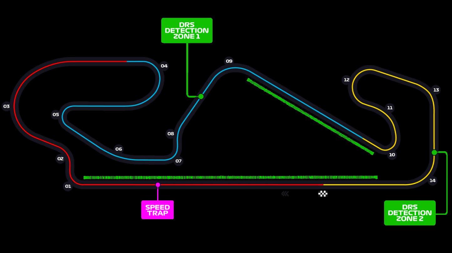 El Circuit de Barcelona-Catalunya es una pista muy exigente y técnica, lo que significa que un coche bien equilibrado resulta fundamental para el éxito. Tiene una longitud total de 4,657 km y 14 curvas diferentes, desde la larga y amplia curva 3 hasta la ajustada horquilla de la curva 10. Debido a su naturaleza equilibrada, el circuito es muy exigente. Debido a su naturaleza equilibrada, el circuito ha sido a menudo el lugar preferido para las pruebas de invierno de la Fórmula 1.