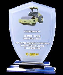 Premio al mejor distribuidor 2022 por gestión comercial entregado por Bomag, marca representada.