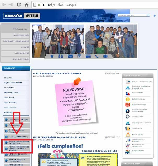 Haz clic en el siguiente enlace de tu Intranet Komatsu