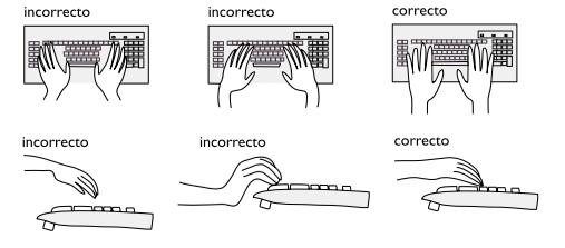 Siempre busca tener la muñeca recta, no la flexiones, mi realices lateralización de la muñeca cuando utilizas el mouse y/o el teclado, de lo contrario…si lo haces te estarás lastimando la muñeca.