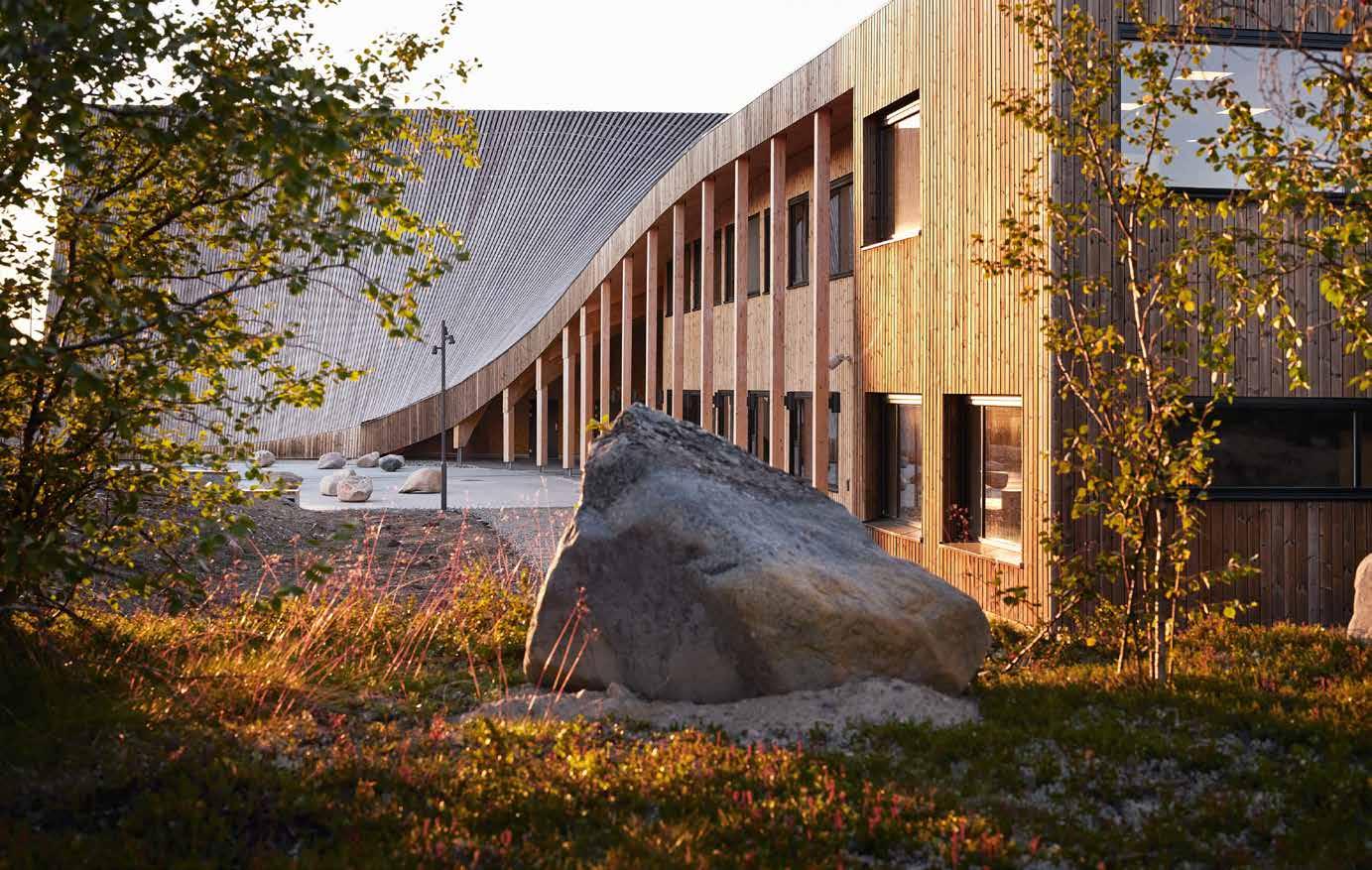 Fra innsiden i det nye stavkirkebygget i Odda, to dager før åpning.