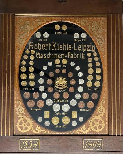 Aus den spärlich erhaltenen Anzeigen und anderen Unterlagen geht hervor, dass Knauer auch Maschinen für handwerkliche Schneidereien, Stickereien oder Schuhmacher herstellte. Immer mehr traten jedoch vor allem mit zunehmender Automatisierung der Produktion nach dem Ersten Weltkrieg Maschinen für die Schuhindustrie sowie für Gummiwaren oder Planen in den Mittelpunkt. Unter dem modischen Namen »ROKILEI« wurden Stanz- und Präge- oder Schneidemaschinen beworben. Wie erfolgreich dieses heute vergessene Unternehmen jedoch war, wissen wir erst seit kurzem: Aus dem Besitz einer niederländischen Unternehmerfamilie, ehemalige Geschäftspartner von Kiehle, konnte das Museum eine Schautafel mit 37 Medaillen von Weltausstellungen und regionalen Industrieausstellungen erwerben. Eine der ältesten ist die Goldmedaille der Weltausstellung Paris 1867. Auch Knauers Teil-