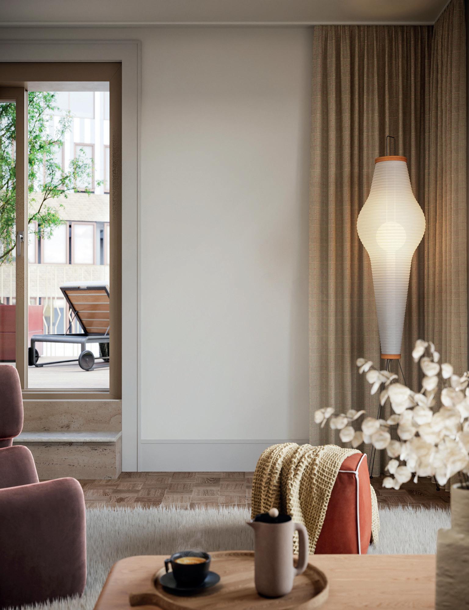 ”I bostäderna ville vi skapa en harmonisk och enhetlig känsla med mycket själ och karaktär, där det är enkelt att skapa ett hem.”