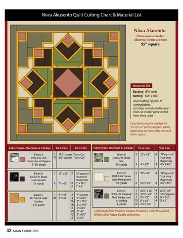 Niwa Akusento Quilt Cutting Chart & Material List Niwa Akusento (Niwa means Garden Akusento means accents)