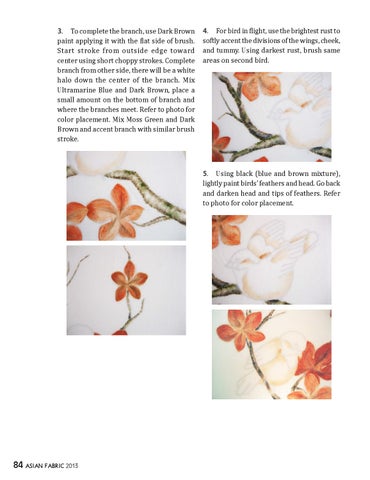 4. For bird in flight, use the brightest rust to softly accent the divisions of the wings, cheek, and tummy. Using darkest rust, brush same areas on second bird.