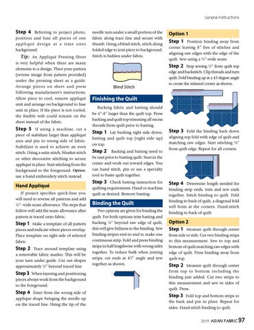 Step 3 Fold top and bottom strips to the back and pin in place. Repeat for sides. Hand-stitch binding to quilt. 2013 ASIAN FABRIC 97
