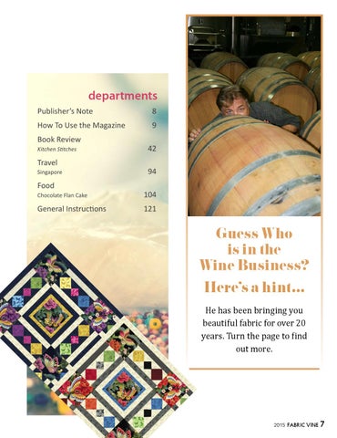 Guess Who is in the Wine Business? Here’s a hint... He has been bringing you beautiful fabric for over 20 years. Turn the page to find out more.