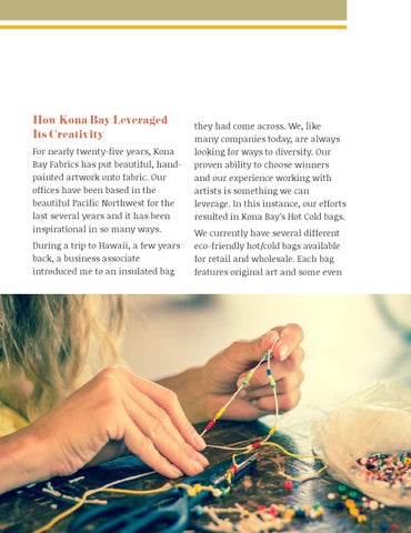 How Kona Bay Leveraged Its Creativity For nearly twenty-five years, Kona Bay Fabrics has put beautiful, handpainted artwork onto fabric. Our offices have been based in the beautiful Pacific Northwest for the last several years and it has been inspirational in so many ways. During a trip to Hawaii, a few years back, a business associate introduced me to an insulated bag