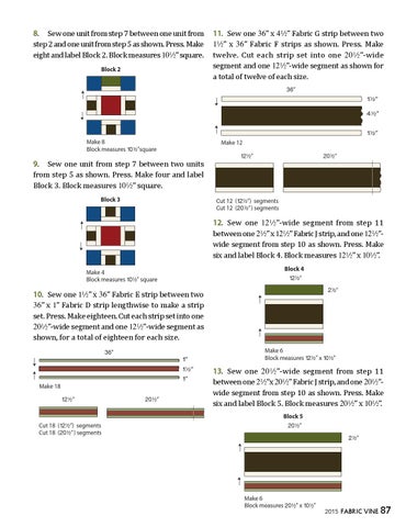 8. Sew one unit from step 7 between one unit from step 2 and one unit from step 5 as shown. Press. Make eight and label Block 2. Block measures !)2” square. Block 2