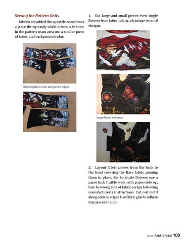 Sewing the Pattern Units Fabrics are added like a puzzle, sometimes a piece fitting easily while others take time. In the pattern seam area use a similar piece of fabric and background color.