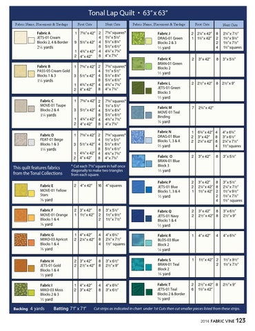 Tonal Lap Quilt • 63” x 63” Fabric Name, Placement & Yardage