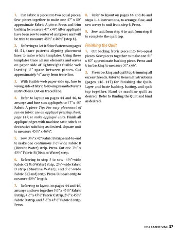 8. Refer to layout on pages 44 and 46 and steps 1–4 instructions, to arrange, fuse, and sew waves to unit from step 4. Press. 9. Sew unit from step 4 to unit from step 8 to complete the quilt top.
