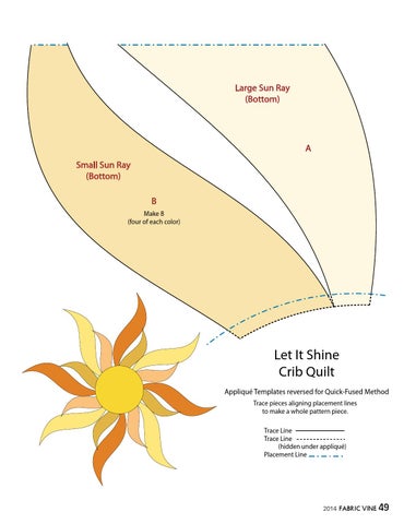 Let It Shine Crib Quilt AppliquĂŠ Templates reversed for Quick-Fused Method Trace pieces aligning placement lines to make a whole pattern piece. Trace Line Trace Line (hidden under appliquĂŠ) Placement Line