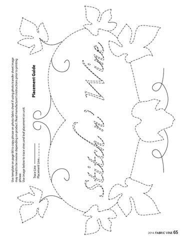 Use template on page 66 to copy phrase on photo fabric sheet if using photo transfer sheet image may need to be reverse depending on product. Read manufacturer’s instructions prior to printing phrase. Use image below to trace vines and leaf placement on unit.