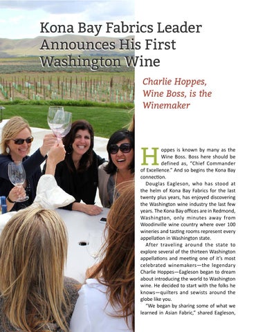 oppes is known by many as the Wine Boss. Boss here should be defined as, “Chief Commander of Excellence.” And so begins the Kona Bay connection. Douglas Eagleson, who has stood at the helm of Kona Bay Fabrics for the last twenty plus years, has enjoyed discovering the Washington wine industry the last few years. The Kona Bay offices are in Redmond, Washington, only minutes away from Woodinville wine country where over 100 wineries and tasting rooms represent every appellation in Washington state. After traveling around the state to explore several of the thirteen Washington appellations and meeting one of it’s most celebrated winemakers—the legendary Charlie Hoppes—Eagleson began to dream about introducing the world to Washington wine. He decided to start with the folks he knows—quilters and sewists around the globe like you. “We began by sharing some of what we learned in Asian Fabric,” shared Eagleson,