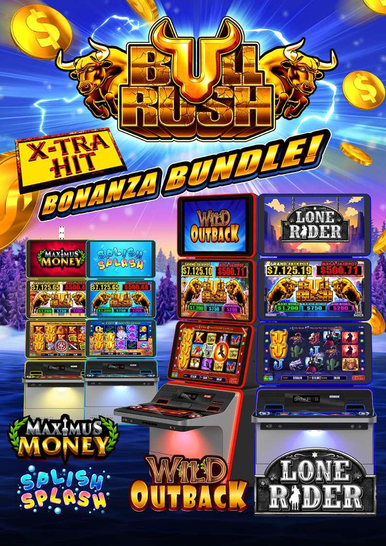 • Any 6 or more ‘Bull’ symbols trigger the Bull Rush Feature.