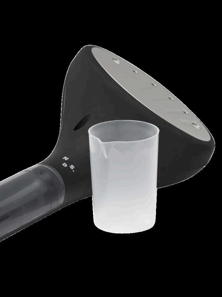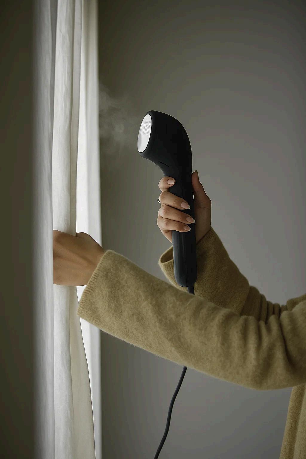 Denna steamer är ett effektivt och stilrent verktyg för att snabbt fräscha upp dina plagg Den mattsvarta finishen i plast och metall gör den både tålig och snygg En vardagshjälte i hemmet eller på resan.
