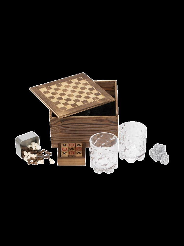 Ett klassiskt spelset med schack och tre i rad, plus två snurrande glas som gör spelet ännu roligare Smidigt att ta med, enkelt att plocka fram och kul för alla åldrar