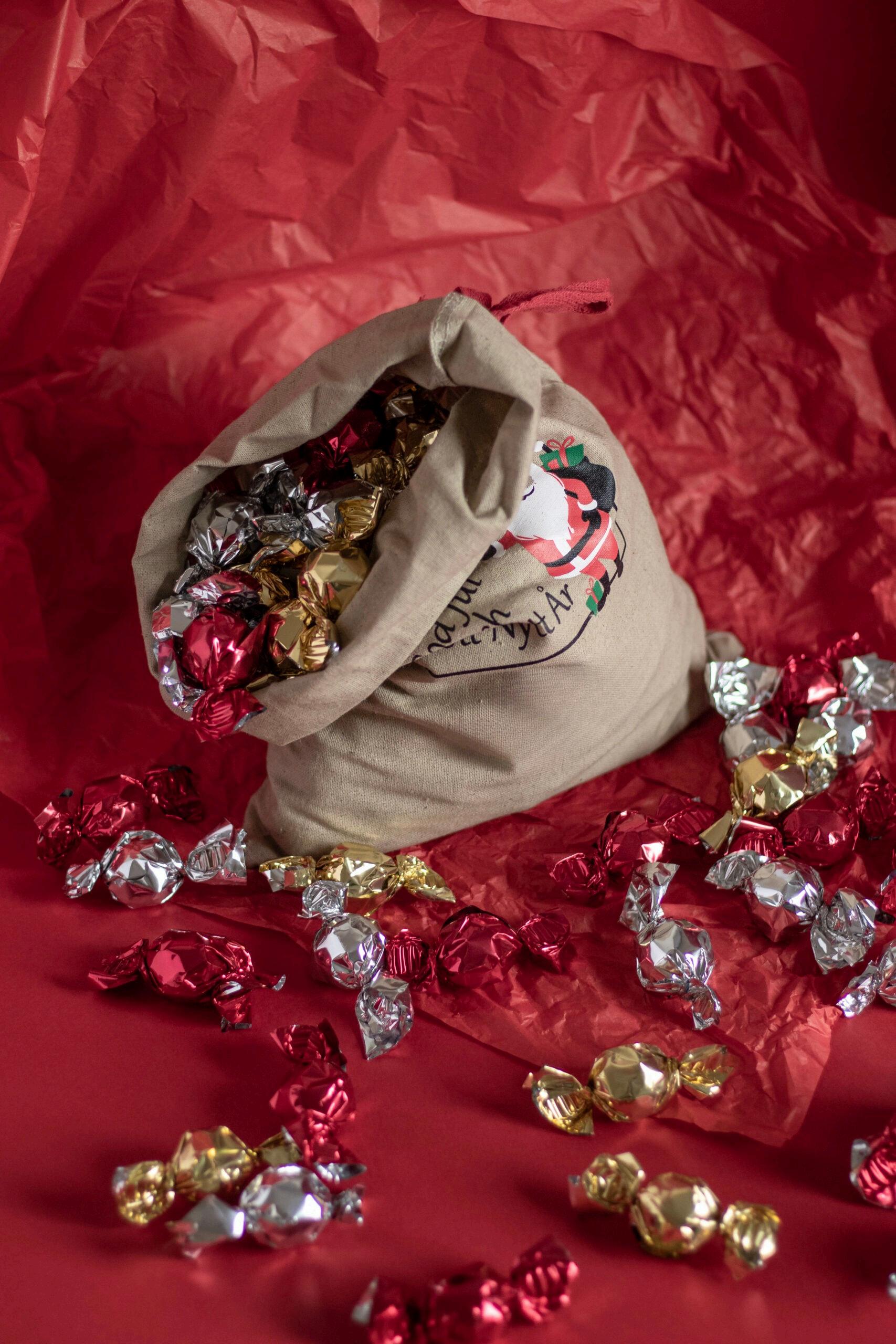 Sprid julglädje med denna charmiga jutesäck fylld med läckert julgodis En av våra mest uppskattade gåvor till kollegor, kunder eller samarbetspartners Kan även beställas med egen logotyp för en extra personlig touch
