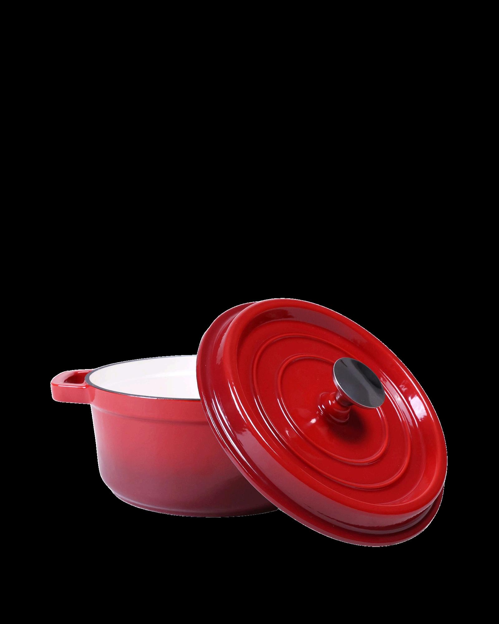 Upptäck glädjen i långkok och smakrika grytor med vår emaljerade gjutjärnsgryta på 4,2 liter Det perfekta verktyget för både vardagsmatlagning och helgmiddagar Den massiva konstruktionen i gjutjärn ger en jämn och stabil värmefördelning, vilket gör varje måltid till en fullträff