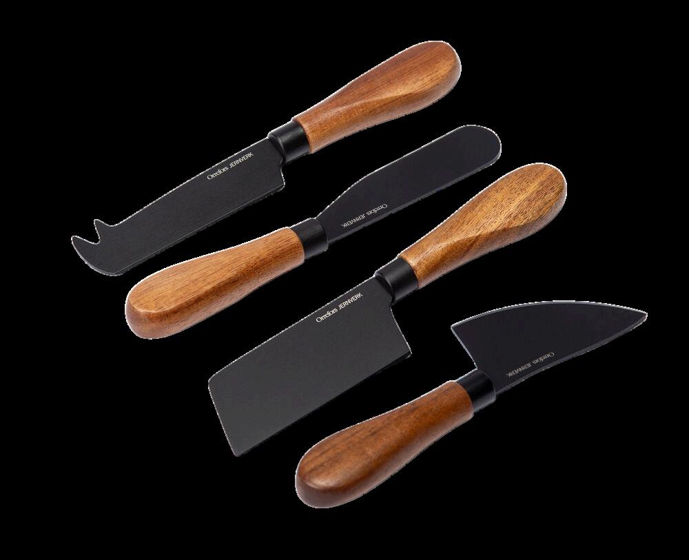 Ostknivar i vackert utförande, passar perfekt till vår vändbara pizzaskärbräda. Knivarna är tillverkade i svart, hårt stål med handtag i elegant akaciaträ Olika knivar för hårda och mjuka ostar Det snygga ostsetet blir en fin detalj på bordet och kan även användas till förrätter och tapas