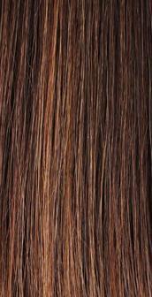 Rich chestnut brown roots brighten to coppery and crisp auburn hues in this cascading color. This vibrant blend is available in 17 of our bestselling long wig styles.