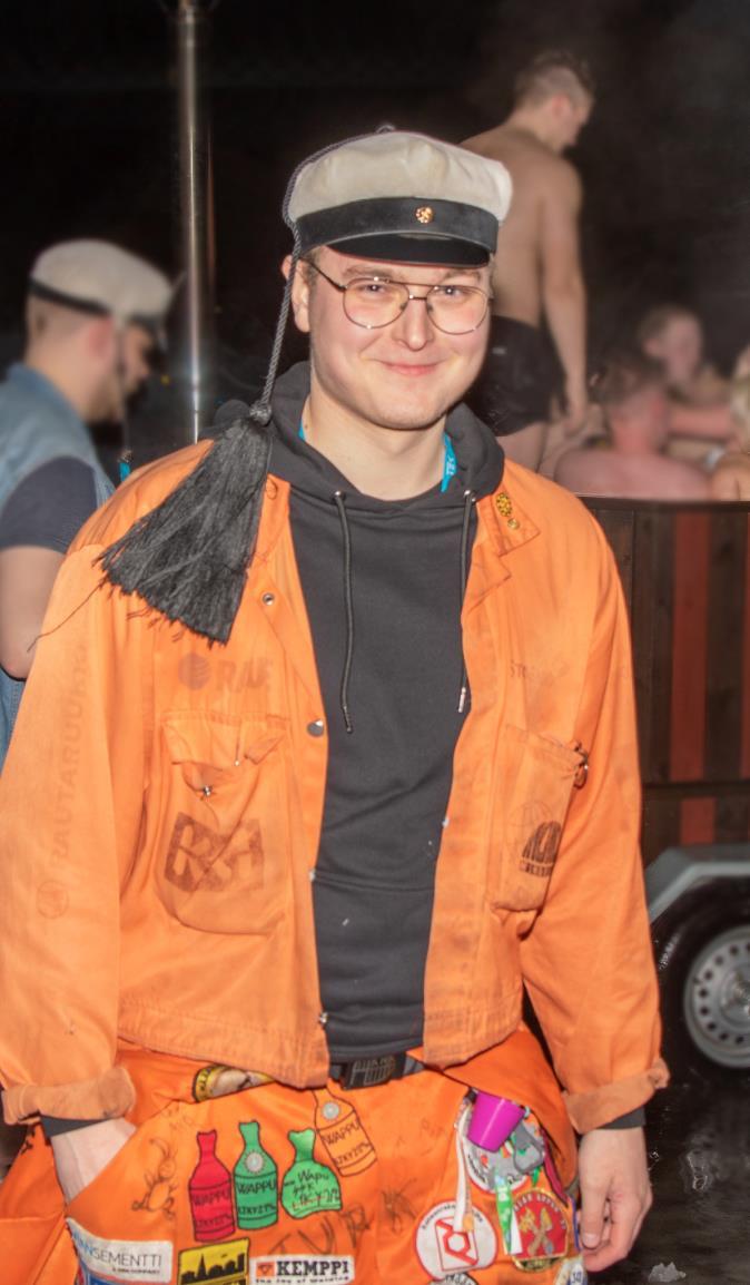 Mä oon Joona ja mä toimin yrityssuhde- ja haalarivastaavana. Oon kotoisin Varkaudesta ja oon syntynyt juuri ennen vuosituhannen vaihdetta. Nuoruuden rassailin mopoja mutta nykyisin lähinnä ydinvoimaloita (ja välillä bemaria).