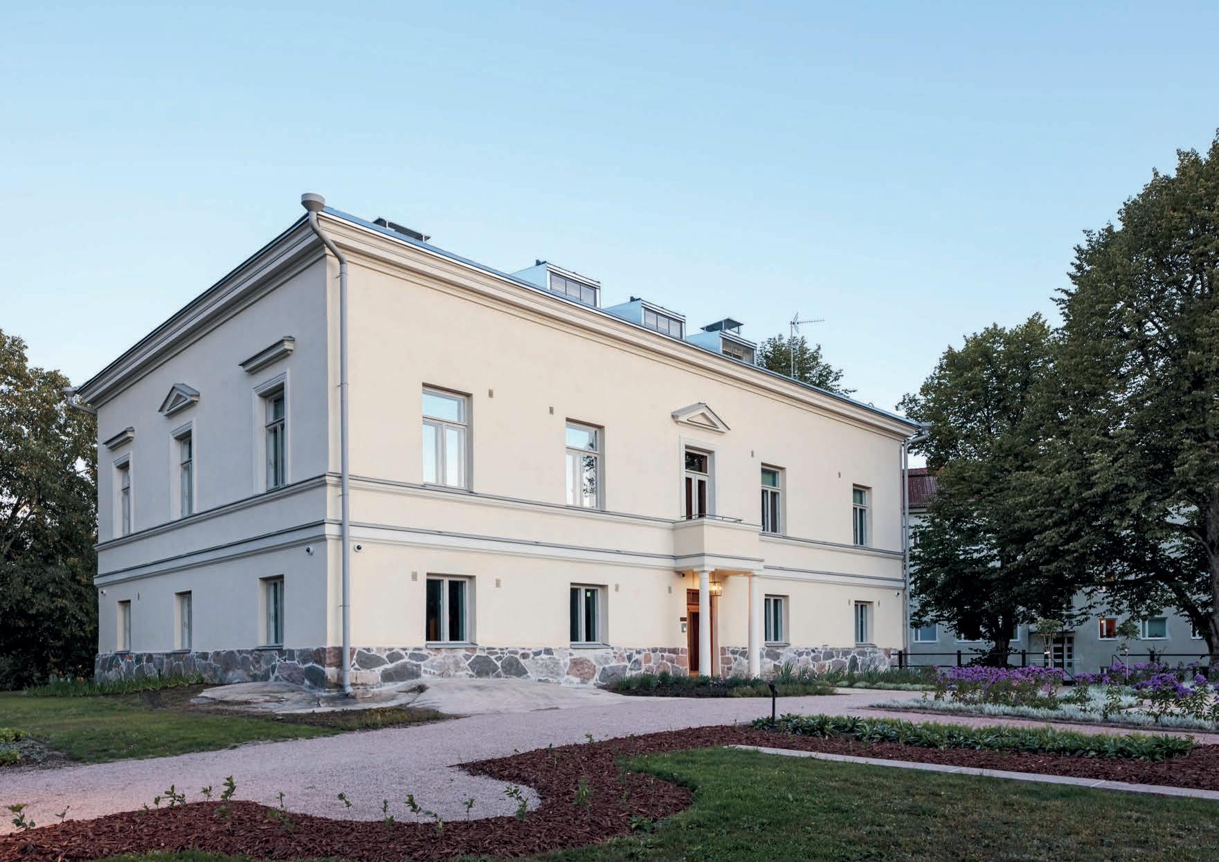 taminen. Rakennuksen tärkeitä, vaalittavia ominaisuuksia ovat huoneiden täysi sisäkorkeus ja alkuperäinen muoto, tilaa artikuloivat säilyneet listat sekä väritutkimuksen perusteella löydetyt värit. Värityksestä ja maalauskäsittelyistä todetaan, että niiden tulisi noudattaa tyylihistoriallisesti väritutkimuksessa löydettyä skaalaa. Modernin talotekniikan tulisi mukailla restaurointitavoitteeksi asetettua tilavaikutelmaa, ja jopa kaakeliuunien palauttamista tärkeimpiin interiööreihin ehdotetaan harkittavaksi. Suojeluohjeissa edellytetään, että rakennuksen toisen kerroksen käyttö suunnitellaan niin, että puurakenteista pääporrasta ei tarvitse paloteknisesti osastoida, ja että porrashuoneen lasiseinät voidaan purkaa. Sairaalavaiheen aikana rakennetun potilashissin purkamista suositellaan, sillä sen sijainti on lähtökohtaisesti huono. Yhtenä erityisenä restaurointitavoitteena mainitaan talon ja sen rakennusosien historiallisten kerrostumien (erityisesti Jarl Eklundin 1927 suunnittelemien pääportaan ja sisustuselementtien) säilyttämistä. Ohjeessa ehdotetaan myös Veli Paatelan 1950-luvun rakennusosien kuten väliovien ja kiinteiden kaapistojen uudelleen käyttämistä.